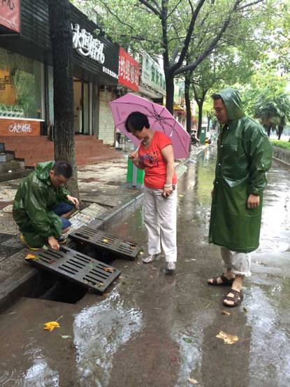 下午3時許,臺風(fēng)“蘇迪羅”到達我市,瞬間下起大暴雨。接到委防指的命令,市房屋置業(yè)擔保公司董事長、總經(jīng)理沈軍、副總經(jīng)理諸平生立即帶領(lǐng)公司應(yīng)急分隊成員十余人第一時間趕到分管路段,在市住建委程國志副主任的指揮下,冒著暴雨迅速組織應(yīng)急分隊人員打開窨井蓋展開排澇,并派人值守以確保安全。(擔保公司)