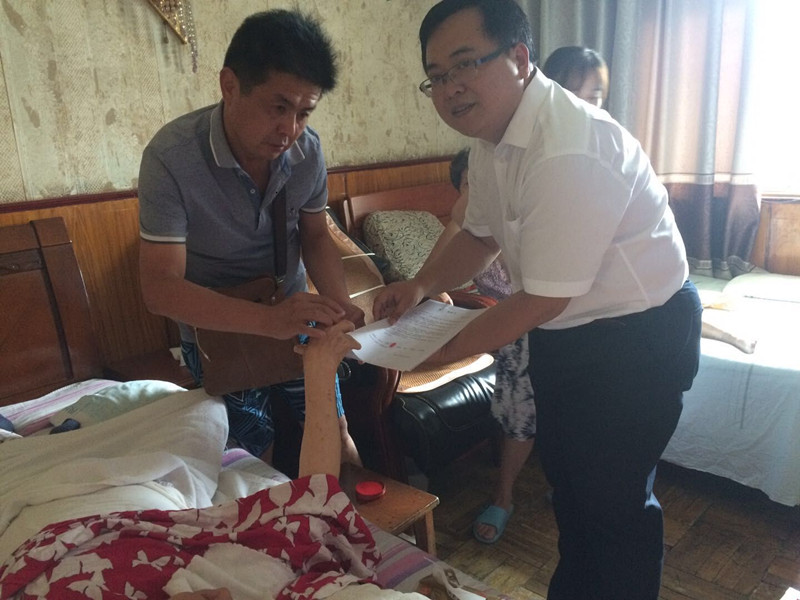 2018年9月2日,市二手房房票結(jié)算中心在接到一戶因房票權(quán)利人中風(fēng)癱瘓后常年臥床,無法到達結(jié)算服務(wù)大廳現(xiàn)場辦理業(yè)務(wù),需提供上門服務(wù)的申請后,結(jié)算中心組織安排前臺工作人員程松同志攜帶相關(guān)材料上門為其現(xiàn)場辦理了業(yè)務(wù),受到客戶的稱贊。